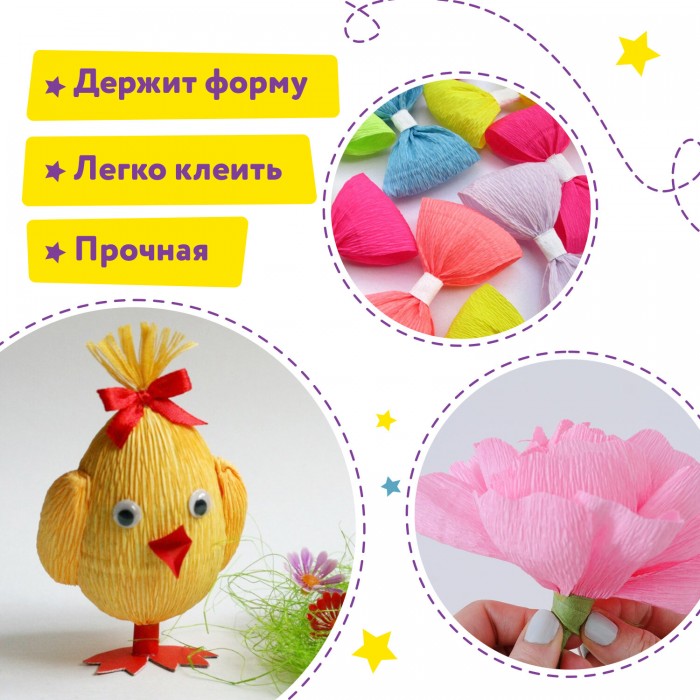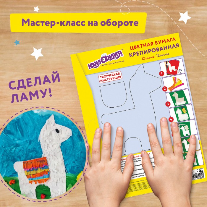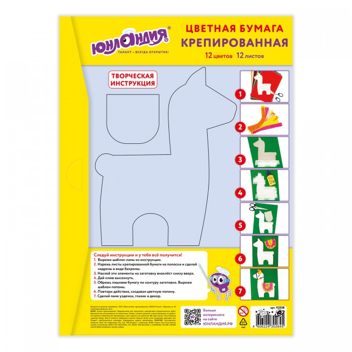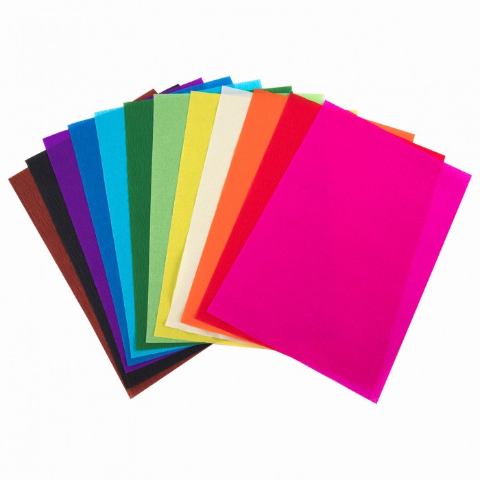 Набор бумаги с мелкоскладчатой (крепированной) поверхностью ЮНЛАНДИЯ используется для создания поделок и аппликаций, украшения открыток и других изделий, оформления подарочной упаковки. В наборе 12 листов формата А4 и 12 различных цветов.