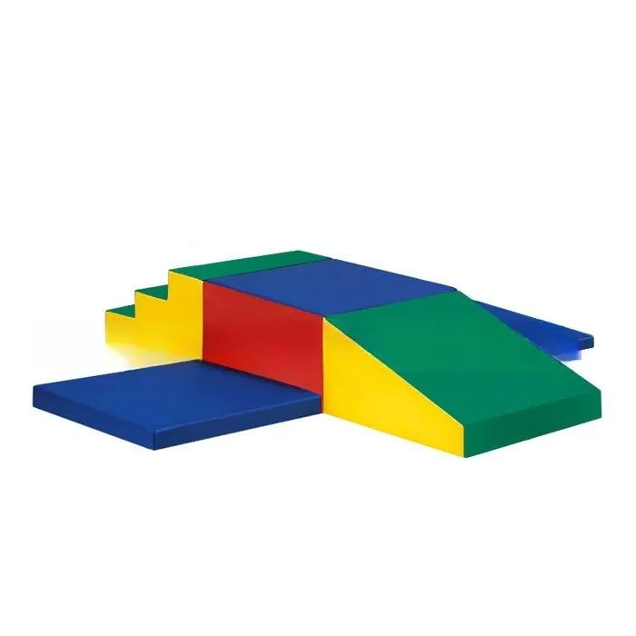 Кожзам и Поролон. Состоит из 5 модулей. Прямоугольник: 600х600х300мм - 1 шт. Горка: 600х600х300 - 1шт. Ступени: 600х600х300мм - 1 шт. Мат: 600х600х40мм - 2шт. Цвета: Красный,Синий,Желтый,Зеленый (вес 9кг 0,35м/куб)