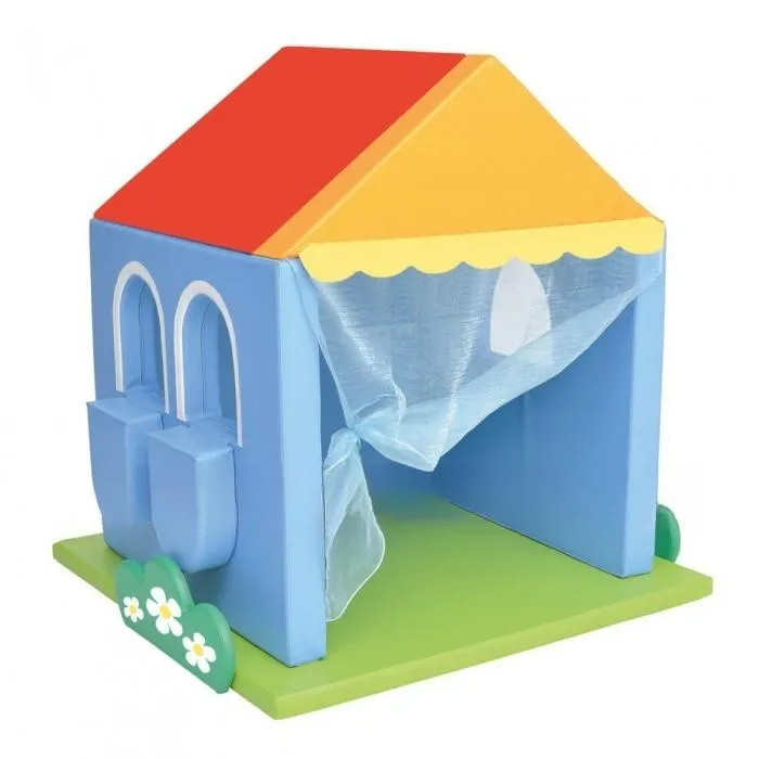 Кожзам и Поролон. Состоит из 10 модулей. Размеры: 1200х1200х1340мм Дом: 1000х1000х1300мм - 1 шт. Мат: 12 00х1200х40мм - 1 шт. Куст: 800х400х20мм - 2 шт. Тюль: 1000х1000мм - 1 шт. Вес: 16кг Объём: 0,58м/куб.