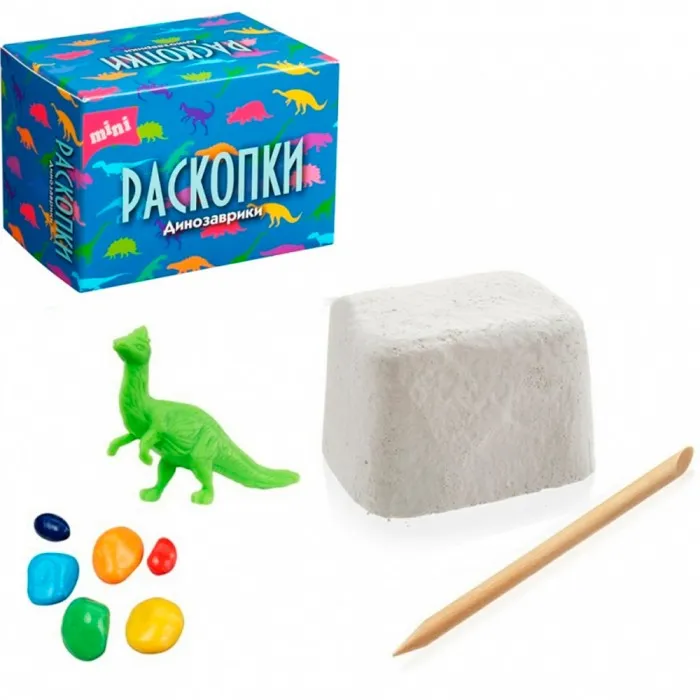 Размер упаковки: 5,5*7,7*5,6 см Вес: 134 г Функционал: набор для проведения раскопок Упаковка: картонная коробка Страна обладатель бренда: Россия Материал: пластик, дерево, гипс Комплектация: брусок с артефактами внутри (динозавр из пластика в ассортименте и россыпь цветных камней), деревянный стек для дробления Возраст ребенка: от 6 лет Набор из серии "Раскопки" - новая, увлекательная игра для любителей археологии. С помощью инструментов, входящих в набор, ребенок сможет снять с бруска слой гипса, откопать фигурку, а остатки гипса удалить щеточкой или при помощи воды. Игра способствует развитию мелкой моторики и воображения. Такой набор надолго увлечет ребёнка в мир древних загадок.