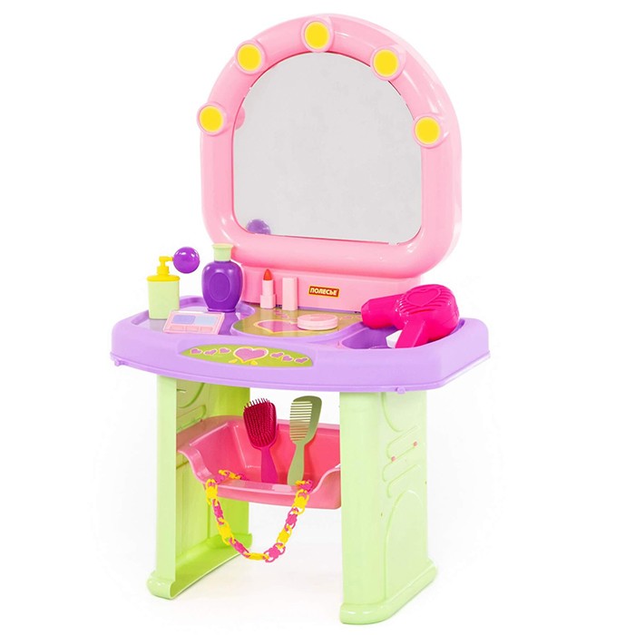 Комплектация: инструменты парикмахера, аксессуары, столик, зеркало, стул Материал: пластик Упаковка: картонная коробка Размер упаковки: 43,5*13*49 см Размеры: 50,5*26,5*64,5 см Страна обладатель бренда: Беларусь Яркий набор модных аксессуаров и практичных инструментов понравится тем, что любит создавать стильные прически. Для игр, имитирующих профессии, есть множество различныхприборов и аксессуаров, которые позволят оборудовать игровой кабинет и организовать его пространство по образу и подобию взрослого. Такие игры приучают к азам профессии, готовят ко взрослой жизни. Набор для игры в парикмахера привлекает внимание не только своим ярким внешним видом, но и функциональностью. С ним малыш почувствует себя настоящим парикмахером и сможет сделать куклам модные прически.