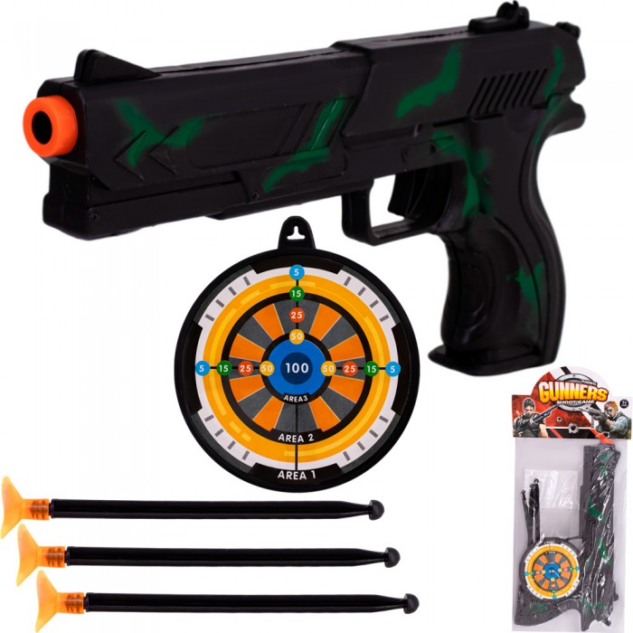 Размер упаковки: 24,5*2,8*12,8 см Функционал: игровой тематический набор, обучение профессии военного Упаковка: пакет с хедером Страна обладатель бренда: КНР Материал: пластик Комплектация: пистолет, 3 стрелы, мишень Возраст ребенка: от 3 лет • Набор военного подойдет как для игр дома, так и для оформления уголка профессий в детском саду. • Стильный и продуманный набор игрушечного оружия и аксессуаров станет хорошим подарком для мальчика, интересующегося военной тематикой. • Он прекрасно дополнит боевой арсенал мальчика и позволит примерить разные образы. • Пистолет оснащен пневматическим механизмом, стреляет пулями на присосках. • Все элементы комплекта выполнены из прочного, износостойкого и безопасного материала. • Этот набор можно использовать как для игр, так и для комплектации карнавального или сценического костюма. • С таким оружием мальчик сможет разыгрывать различные сценки и устроить веселые и увлекательные игры с друзьями дома и на улице.