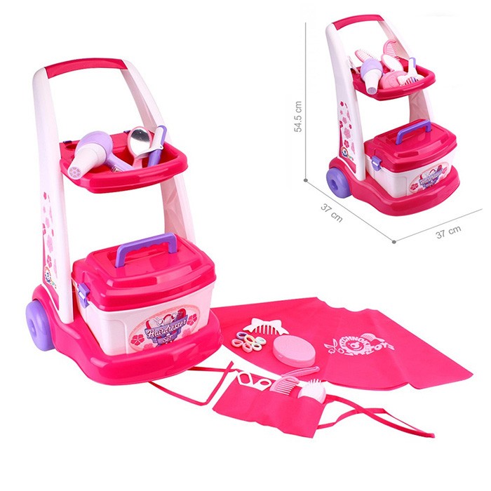 Размер упаковки: 54,5 х 37 х 37 см Вид упаковки: саквояж с цветным картонным поясом Страна производитель: Украина Материал: пластик Комплектация: тележка, саквояж, фен, плойка, расческа, щетка, зеркальце, 2 заколки гребешок, пудреница, пинцет, ножницы, накидка, пояс, 6 резинок для волос, инструкция Тип питания: от батарейки типа «АА» Вес: 2000 гр. Возраст ребенка: от 3 лет «Набор парикмахера» от ТехноК станет прекрасным подарком каждой девочки на любой праздник. Такой набор несомненно пригодится, когда нужно сделать прическу подружкам, маме или своим любимым куклам! Особенности: - размеры игрушечного принадлежности оптимально рассчитаны для девочек; - хранить и переносить парикмахерские инструменты и аксессуары можно во вместительном саквояже на защелках и на тележке; - «Набор парикмахера» взять с собой на прогулку или в детский сад; - с набором парикмахера от ТехноК каждая девочка почувствует себя настоящей принцессой; - сюжетно-ролевые игры развивают детское воображение, ф