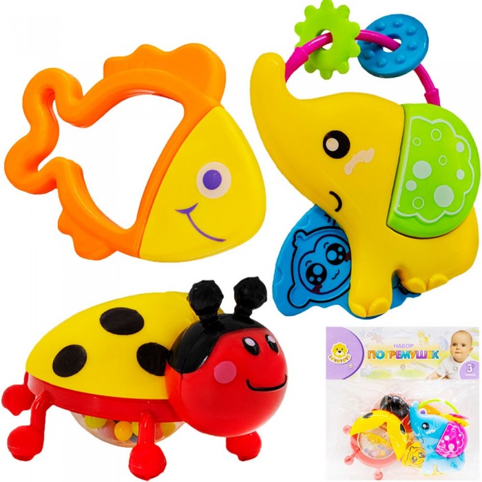 Размер упаковки: 19 х 3 х 21 см Функционал: погремушка Упаковка: пакет с хедером Страна производитель: КНР Материал: пластик Комплектация: рыбка (7,5 х 9 см) - 1 шт., божья коровка (6 х 11 см) - 1 шт., слоник (9 х 7,5 см) - 1 шт. Возраст ребенка: от 3 месяцев • Яркие погремушки предназначена для малышей. • Они направлены на развитие моторики, концентрации внимания и зрительного восприятия. • Неодродная поверхность стимулирует тактильные ощущения. • Яркая расцветка привлекает внимание. • Цветные шарики перекатываются внутри и издают звуки. • Способствует развитию слуха, фантазии, мышления, поднятию настроения. • Изготовлена из безопасных и гипоаллергенных материалов. • Перед применением рекомендуется помыть в тёплой воде с детским моющим средством.