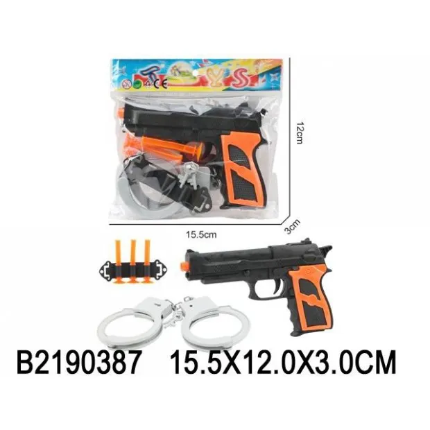 Размер упаковки: 15,5*12*3 см Функционал: игровой тематический набор, обучение профессии полицейского Упаковка: пакет с хедером Страна обладатель бренда: КНР Материал: пластик Комплектация: пистолет - 1 шт., пуля - 3 шт., наручники - 1 шт. Возраст ребенка: от 3 лет Набор полицейского подойдет как для игр дома, так и для оформления уголка профессий в детском саду. Стильный и продуманный набор игрушечного оружия и аксессуаров станет хорошим подарком для мальчика, интересующегося военной тематикой. Он прекрасно дополнит боевой арсенал мальчика и позволит примерить разные образы. Пистолет оснащен пневматическим механизмом, стреляет пулями на присосках. Все элементы комплекта выполнены из прочного, износостойкого и безопасного материала. Этот набор можно использовать как для игр, так и для комплектации карнавального или сценического костюма. С таким оружием мальчик сможет разыгрывать различные сценки и устроить веселые и увлекательные игры с друзьями дома и на улице.