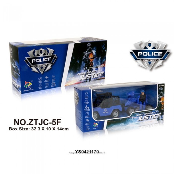 Размер упаковки: 32,5 х 10 х 14 см Размер изделия: фигурка полицейского 5 х 0,4 х 9,5 см, машина 15 х 6,5 х 8 см, квадроцикл 11 х 6,5 х 10 см Функционал: детский игровой набор, набор полицейского Вид упаковки: картонная коробка блистерного типа Страна производитель: КНР Материал: полимеры Комплектация: фигурка полицейского - 1 шт, машина - 1 шт, квадроцикл - 1 шт Возраст ребенка: для детей от 3 лет С таким набором ребенок примерит на себя роль полицейского, больше узнает об этой профессии и инструментах, которые они используют. Играя, дети смогут развивать: - воображение - социальные навыки - учиться ладить друг с другом во время совместной игры - разрабатывая стратегии - завоевывать свои первые победы Особенности: - игрушки с подвижными элементами - выполнены их качественных материалов - игрушка не боится механического воздействия - устойчивыми к внешнему воздействию
