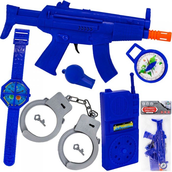 Размер упаковки: 47,5 х 20 х 5,2 см Упаковка: пакет с картонным хедером Функционал: игрушки в наборах Вид: полицейский игровой набор Страна производитель: КНР Материал: пластик Комплектация: автомат – 1 шт., рация – 1 шт., наручники – 1 шт., ключи от наручников – 2 шт., компас – 1 шт., наручные часы – 1 шт., свисток – 1 шт. Возраст ребенка: 3+ Если малыш мечтает стать отважным героем, то детский набор полицейского – отличный подарок для вашего озорника. Сюжетно-ролевая игра развивает воображение, познавательное мышление, формирует черты характера и коммуникативные способности, содействует приобретению навыков, присущих той или иной профессии, а главное помогает детям социально адаптироваться. Изделие выполнено из прочного и безопасного для детей пластика.