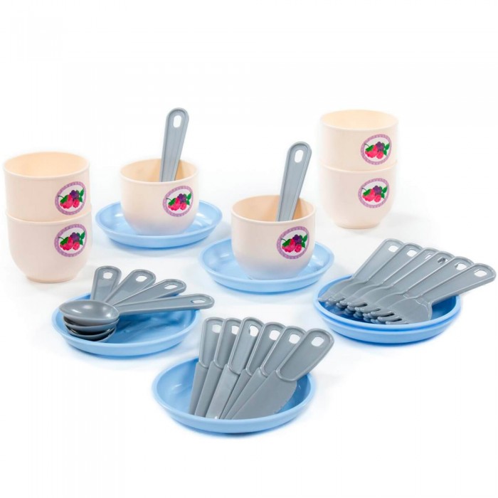 Размер упаковки: 14,6*13,8*13,3 см Функционал: игровой тематический набор, кулинария Упаковка: сетка Страна обладатель бренда: Беларусь Материал: пластик Комплектация: тарелка - 6 шт., чашка - 6 шт., ложка - 6 шт., вилка - 6 шт., нож - 6 шт. Возраст ребенка: от 3 лет Для игр, имитирующих повседневные домашние дела, есть множество различныхприборов и аксессуаров, которые позволят оборудовать игровой домик и организовать его пространство по образу и подобию взрослого. Такие игры приучают девочек к ведению домашнего хозяйства, готовят ко взрослой жизни. Набор для приготовления кукольной еды привлекает внимание не только своим ярким внешним видом, но и функциональностью. В набор входит 30 предметов для сервировки на 6 персон. С ним малышка почувствует себя настоящей хозяйкой и сможет приготовить куклам угощение.