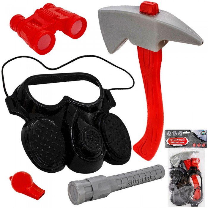 Размер упаковки: 37,3 х 19,4 х 6 см Упаковка: пакет с картонным хедером Функционал: игрушки в наборах Вид: набор пожарный Страна производитель: КНР Материал: пластик Комплектация: бинокль – 1 шт., пожарный штурмовой топор – 1 шт., свисток – 1 шт., фальшфейер (фонарик) – 1 шт., маска – 1 шт. Возраст ребенка: 3+ Если малыш мечтает стать отважным героем, то детский набор пожарного – отличный подарок для вашего озорника. Игровой набор разовьёт у ребёнка воображение, поможет дошколёнку в изучении социальных ролей, а также познакомит с важными профессиями. Изделие выполнено из прочного и безопасного для детей пластика.