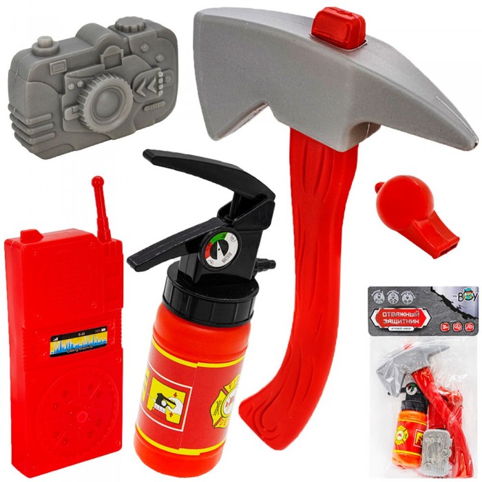 Размер упаковки: 35,5 х 20 х 4,5 см Упаковка: пакет с картонным хедером Функционал: игрушки в наборах Вид: набор пожарный Страна производитель: КНР Материал: пластик Комплектация: огнетушитель-пульверизатор – 1 шт., рация – 1 шт., пожарный штурмовой топор – 1 шт., свисток – 1 шт., фотоаппарат – 1 шт. Возраст ребенка: 3+ Если малыш мечтает стать отважным героем, то детский набор пожарного – отличный подарок для вашего озорника. Игровой набор разовьёт у ребёнка воображение, поможет дошколёнку в изучении социальных ролей, а также познакомит с важными профессиями. Изделие выполнено из прочного и безопасного для детей пластика.