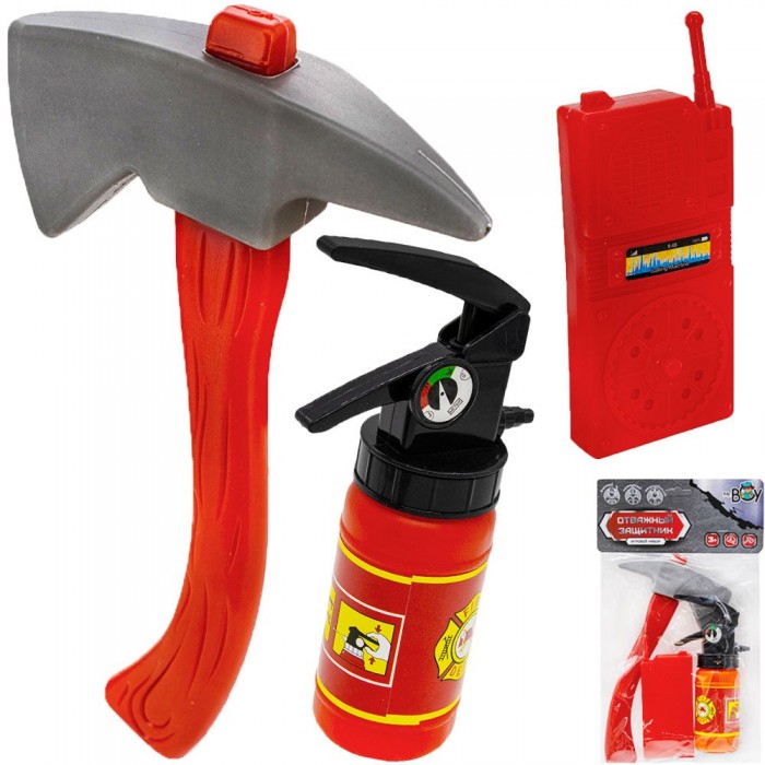 Размер упаковки: 35 х 19,4 х 5 см Упаковка: пакет с картонным хедером Функционал: игрушки в наборах Вид: набор пожарный Страна производитель: КНР Материал: пластик Комплектация: пожарный штурмовой топор – 1 шт., свисток – 1 шт., рация – 1 шт., огнетушитель-пульверизатор – 1 шт. Возраст ребенка: 3+ Если малыш мечтает стать отважным героем, то детский набор пожарного – отличный подарок для вашего озорника. Игровой набор разовьёт у ребёнка воображение, поможет дошколёнку в изучении социальных ролей, а также познакомит с важными профессиями. Изделие выполнено из прочного и безопасного для детей пластика.
