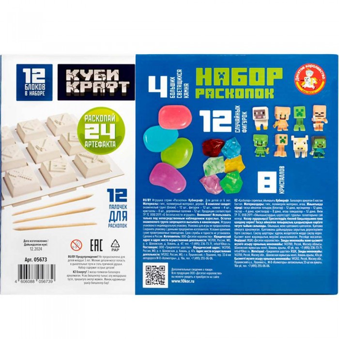 Набор Раскопки Кубикрафт 12 блоков 24 артефакта 05673