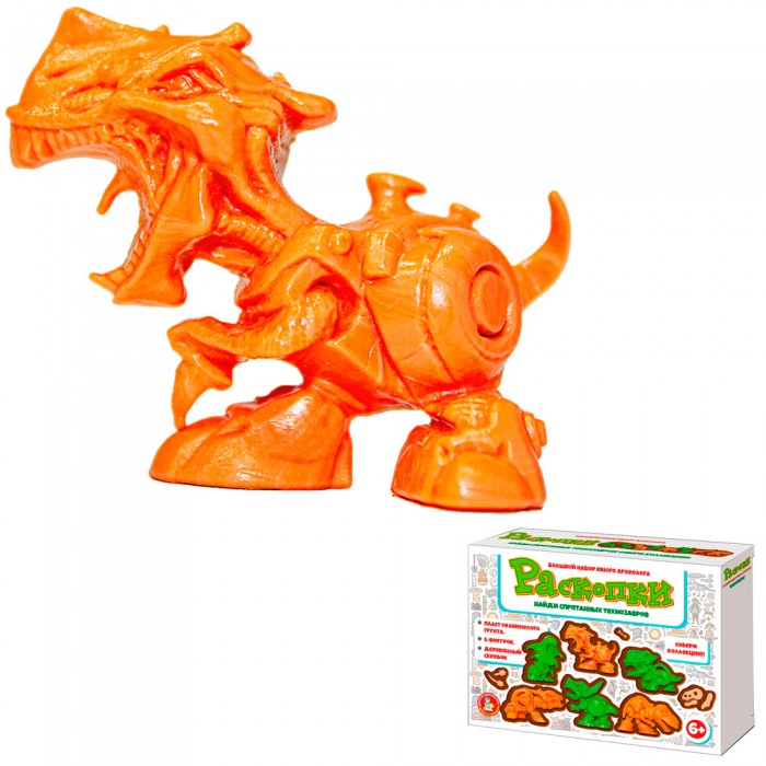 Размер упаковки: 17,5*12,5*4,5 см Размер изделия: фигурка - 2,5 см Функционал: набор для проведения раскопок Упаковка: картонная коробка Страна обладатель бренда: Россия Материал: гипс, пластик, дерево Комплектация: пласт грунта (гипс); деревянный стек – 1 шт.; фигурки технозавров - 6 шт. Возраст ребенка: от 6 лет Набор из серии "Раскопки" - новая, увлекательная игра для любителей археологии. С помощью инструментов, входящих в набор, ребенок сможет снять с бруска слой гипса, откопать фигурку, а остатки гипса удалить щеточкой или при помощи воды. Игра способствует развитию мелкой моторики и воображения. Такой набор надолго увлечет рбенка в мир древних загадок.