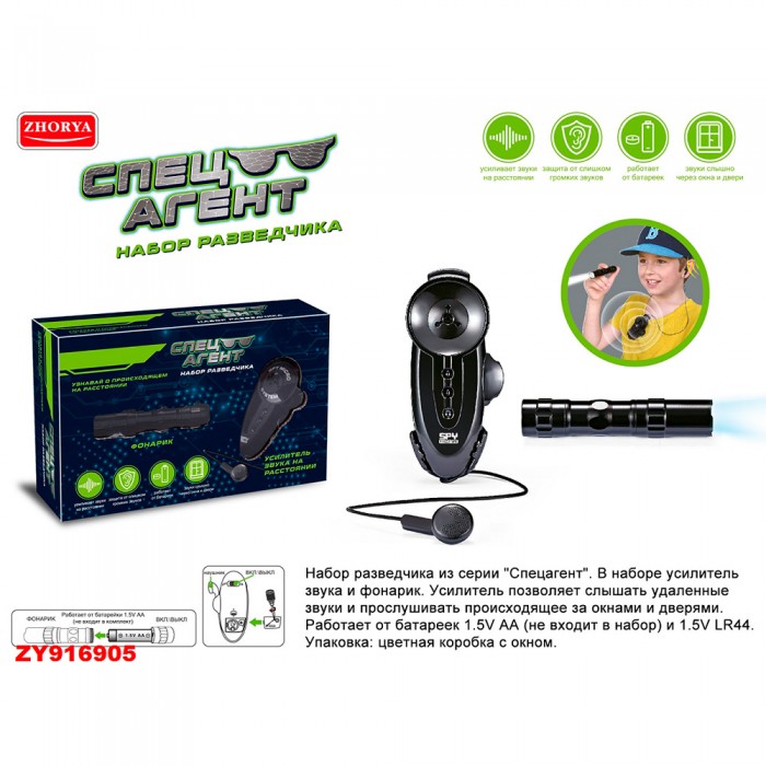 Набор разведчика ZY916905 Спецагент фонарик и усилитель звука в кор.