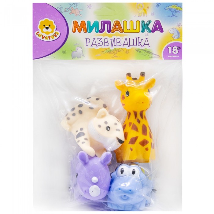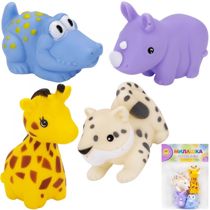 Размер упаковки: 22 х 15 х 9,1 см Упаковка: пакет с картонным хедером Функционал: игрушки резиновые для малышей Вид: набор резиновых игрушек для ванной Страна производитель: КНР Материал: пластизоль Комплектация: 4 резиновые фигурки (жираф, носорог, крокодил, леопард) Возраст: детям с 18+ месяцев Игрушки для ванны Levatoys непременно понравятся вашему ребенку и превратят купание в веселую игру! Особенности: В набор входят игрушки-брызгалки в виде очаровательных животных. Яркие игрушки выполнены из мягкого безопасного материала и приятны на ощупь. Если сначала набрать воду в игрушки, а потом нажать на них, то брызнет тонкая струя воды, что, несомненно, развеселит вашего малыша. Набор игрушек способствует развитию воображения, цветового восприятия, тактильных ощущений и мелкой моторики рук, а также поможет выучить названия животных.