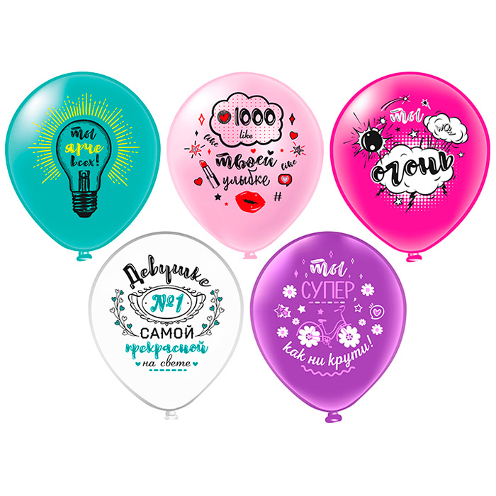 Набор шаров 12'' Пастель шелк Комплимент Для неё! 5 дизайнов 25 шт./уп. Ч41591