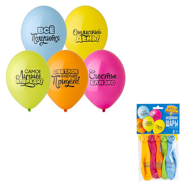 Набор шаров рис. Мотивирующие 36 см 5шт в уп. 1111-1163 /цена за упак/