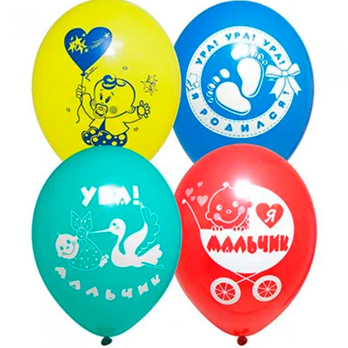 Набор шаров рис Ура! Мальчик! 30см 5шт. 1111-0843 /цена за уп/.