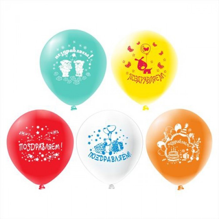 Набор шаров шелк рис. 2ст. Поздравляем 30 см (5 шт./уп.) /БК Ч01345