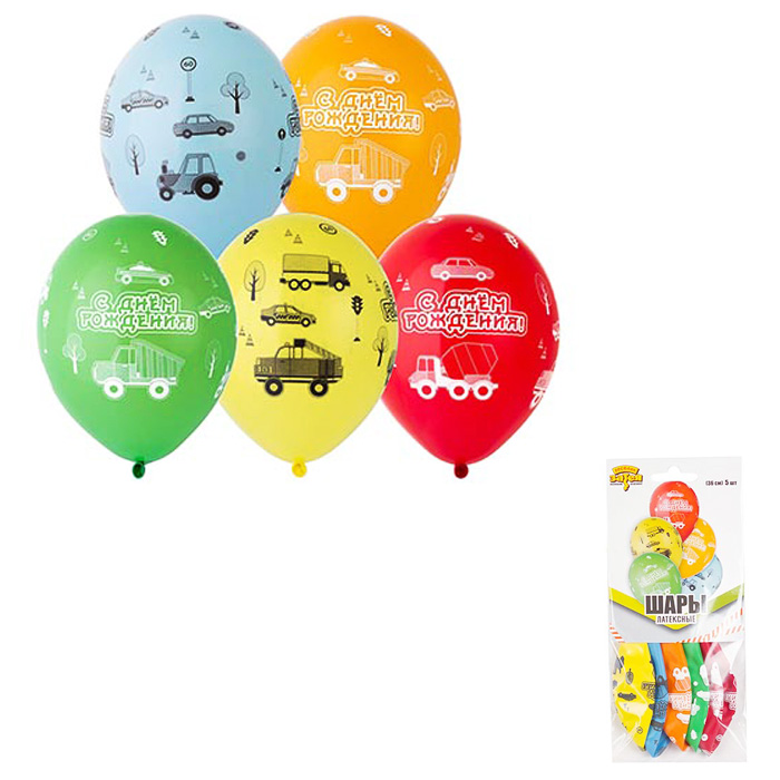 Набор шаров шелк С ДР Машинки 36 см 5 штук 1111-1170