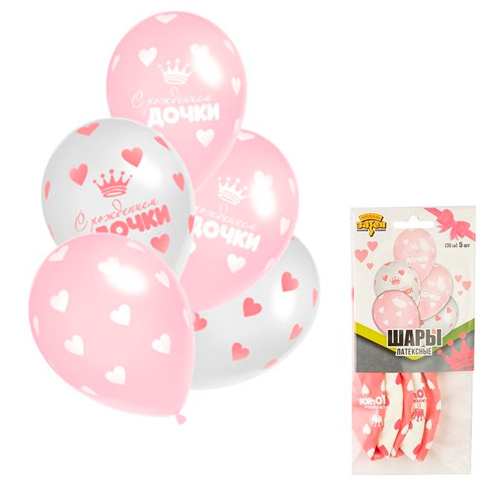Набор шаров Шелк С Рождения Дочки 36 см 5 шт в уп. 1111-0996 /цена за упак/
