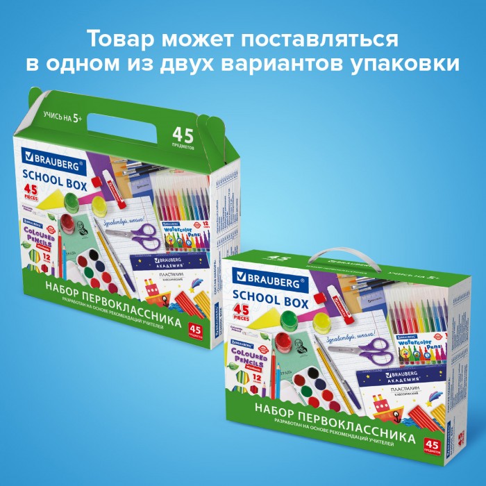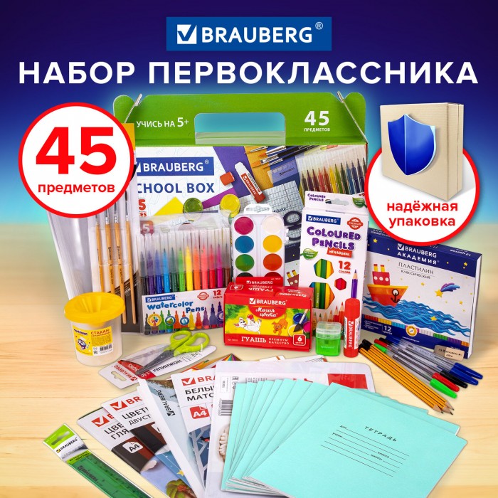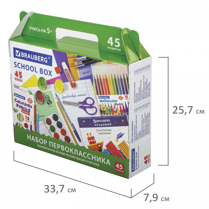 Набор школьных принадлежностей в подарочной коробке BRAUBERG "НАБОР ПЕРВОКЛАССНИКА", 45 предметов, 880122