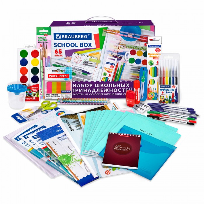 Набор школьных принадлежностей в подарочной коробке BRAUBERG "ШКОЛЬНЫЙ УНИВЕРСАЛЬНЫЙ", 65 предметов, 881133