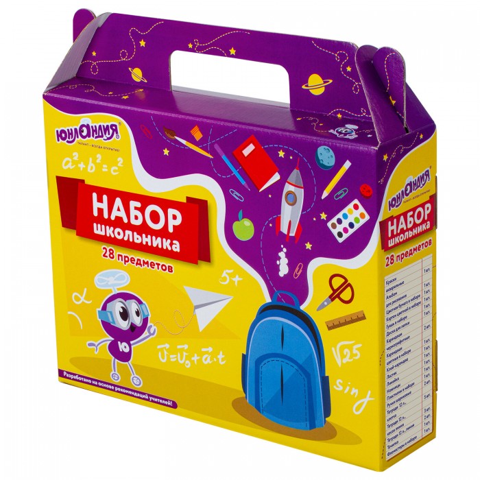 Набор канцелярских принадлежностей ЮНЛАНДИЯ "К ШКОЛЕ ГОТОВ" для выпускников детского сада и учеников начальной школы в красочной упаковке. Скомплектован на основе рекомендаций учителей.