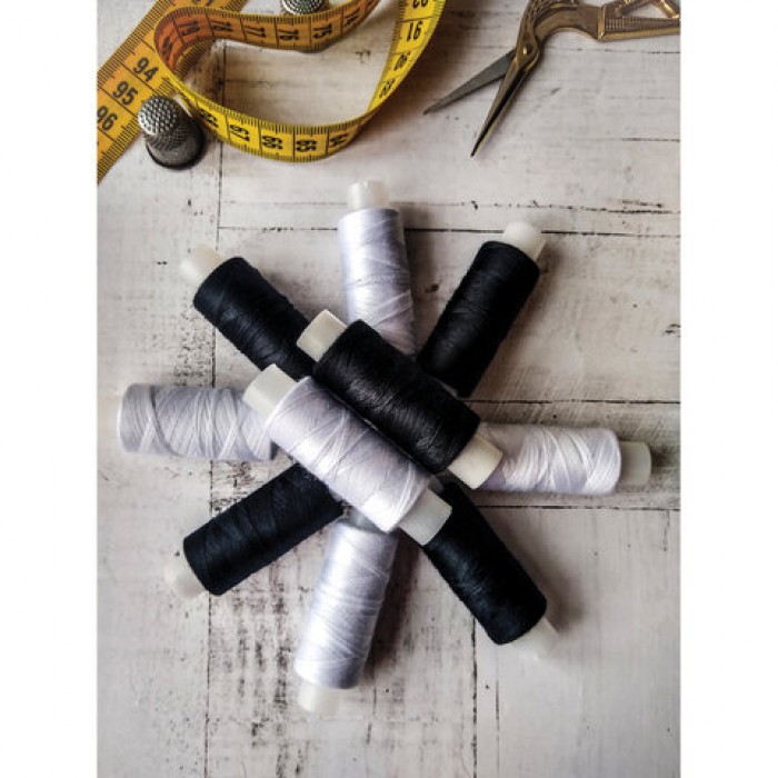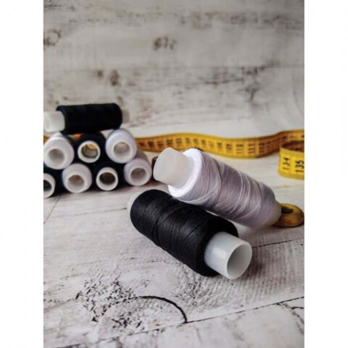 Набор швейных ниток, 10 штук (5 белых и 5 черных) по 150 м, прочные, 45 ЛЛ, ОСТРОВ СОКРОВИЩ, 662790