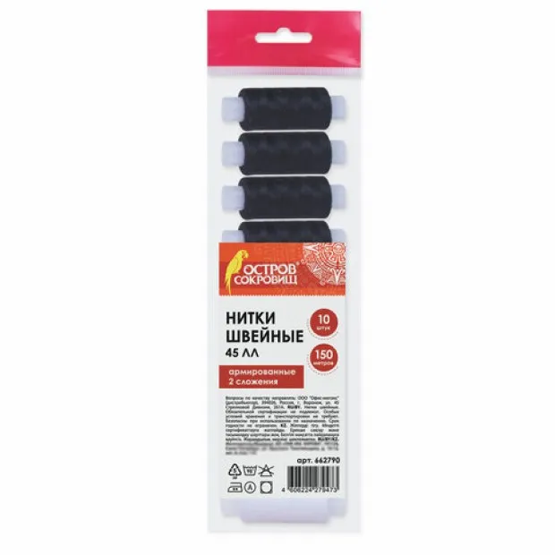 Набор ниток ОСТРОВ СОКРОВИЩ характеризуется высоким качеством исполнения. Нитки в наборе применяются для всех видов одежды, обладают отличными пошивочными свойствами и подходят как для ручного шитья, так и для всех видов швейных машин.