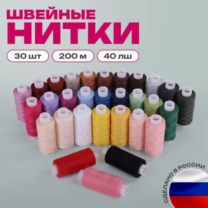 Набор швейных ниток, 30 цветов по 200 м, в боксе, 40 ЛШ, ОСТРОВ СОКРОВИЩ, 662787