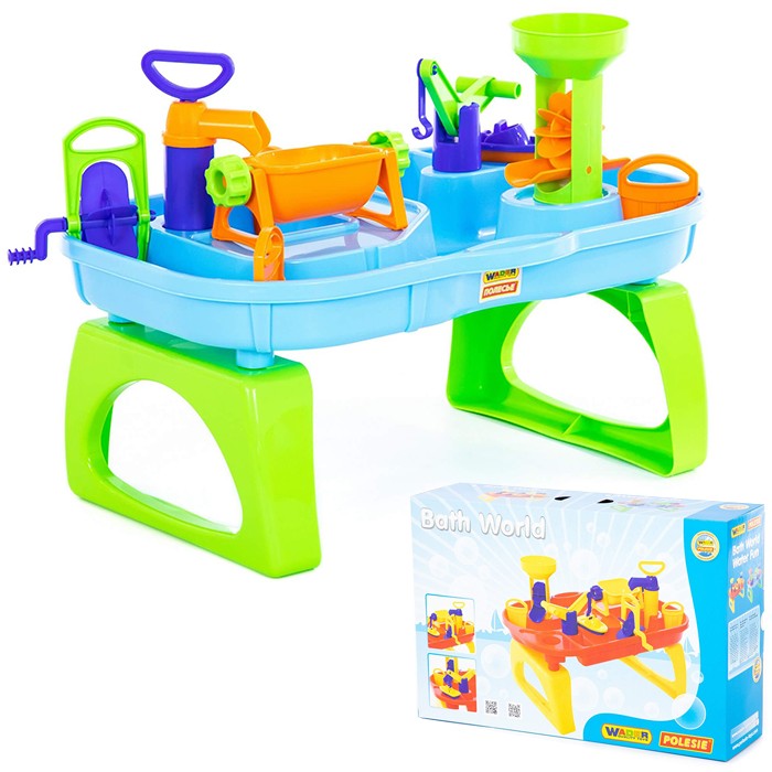 Размер изделия: 53х38х39,5 см Состав: пластик Возраст: от 3 лет Комплектация: столик с аксессуарами Упаковка: коробка Страна изготовления: Беларусь Набор "Водный мир №4" представляет собой столик с аксессуарами для игр с водой. Это увлекательное занятие позволит малышу познакомиться со свойствами жидкости и отлично провести время. На столике расположены 2 водяных мельницы, водяной насос, подъемный кран, шлюзы для воды и лодочка. Ребенок может накачать воду в ковшик при помощи насоса и вылить обратно, опрокинув ковшик, эвакуировать лодку подъемным краном, ставить и убирать шлюзы, пропуская лодочку. Игра с таким набором способсвует психологическому расслаблению, помогает развить тактильное восприятие и мелкую моторику. Все края столика и аксессуаров скруглены, не имеют острых частей и зазубрин. Изделие изготовлено из качественных безопасных материалов. Цвета представлены в ассортименте.