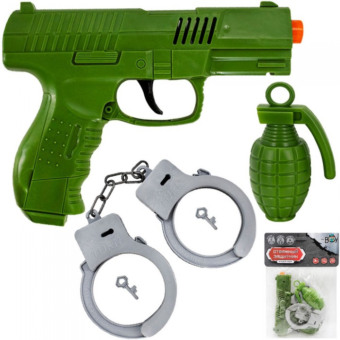 Размер упаковки: 27,4 х 19,4 х 3,5 см Упаковка: пакет с картонным хедером Функционал: игрушки в наборах Вид: полицейский игровой набор Страна производитель: КНР Материал: пластик Комплектация: пистолет – 1 шт., наручники – 1 шт., ключи от наручников – 2 шт., граната – 1 шт. Возраст ребенка: 3+ Если малыш мечтает стать отважным героем, то детский набор военного – отличный подарок для вашего озорника. Сюжетно-ролевая игра развивает воображение, познавательное мышление, формирует черты характера и коммуникативные способности, содействует приобретению навыков, присущих той или иной профессии, а главное помогает детям социально адаптироваться. Изделие выполнено из прочного и безопасного для детей пластика.