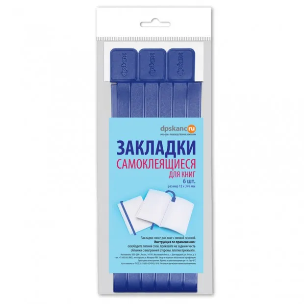Набор закладок для книг 12*376мм (ляссе с клеевым краем), ДПС, 06шт., голубой