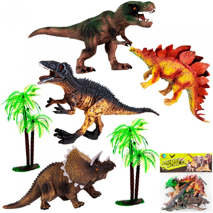 Размер упаковки: 20 х 25 х 5 см Вид упаковки: пакет с хедером Функционал: игровой набор Страна производитель: КНР Материал: пластик, ПВХ Комплектация: 4 динозавра, 2 дерева Рекомендуемый возраст ребёнка: 3+ Если ваш ребёнок увлекается динозаврами, то этот игровой набор будет ему по душе. С помощью него дети смогут узнать как выглядели древние ящерицы, придумать с фигурками интересные сюжеты и дополнить в свою коллекцию игрушек. Динозавры хорошо детализированные. В комплекте: 4 динозавра и 2 дерева. Все фигурки выполнены из безопасных, качественных материалов, которые безопасны для здоровья детей. Подобные игровые набора привлекают внимание детей, а также развивают воображение, любознательность и тактильное восприятие.