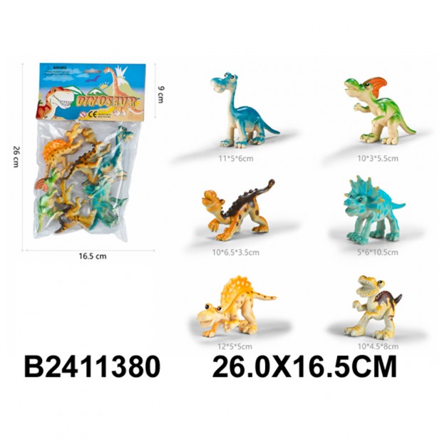 Размер упаковки: 16,5 х 2 х 26 см Размер изделия: диплодок 11 х 5 х 6 см, трицератопс 5 х 6 х 10,5 см, спинозавр 12 х 5 х 5 см, эрреразавр 10 х 4,5 х 8 см, паразаврофпхус 10 х 3,5 х 5,5 см, анкилозавр 10 х 6,5 х 3,5 Функционал: детский игровой набор Вид упаковки: пакет с хедером Страна производитель: КНР Материал: полимеры Комплектация: диплодок - 1шт, трицератопс - 1 шт, спинозавр - 1 шт, эрреразавр - 1 шт, паразаврофпхус - 1 шт, анкилозавр - 1 шт Возраст ребенка: для детей от 3 лет Фигурки - уменьшенные копии динозавров Особенности: - выполнены их качественных материалов - игрушка не боится механического воздействия - устойчивыми к внешнему воздействию - набор идеально подходит и в качестве обучающего материала