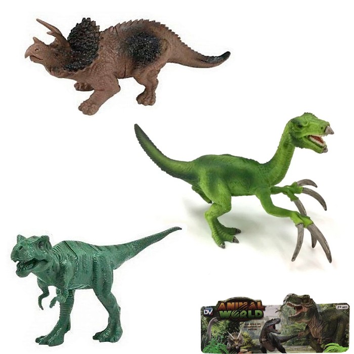 Размер упаковки: 23*5*23 см Размер изделия: 14 см Функционал: фигурки животных Упаковка: пакет с хедером Страна обладатель бренда: КНР Материал: пластик Комплектация: игрушка - 3 шт., дерево - 2 шт. Возраст ребенка: от 3 лет • Набор фигурок динозавров представляет очень хорошо детализированные и проработанные образы. • Такие наборы отлично подходят в качестве демонстрационного материала, чтобы показать ребенку наглядно, как выглядит то или иное животное. • Так же с ними можно устроить сюжетные игры, фигурки можно сортировать и классифицировать по разным принципам. • Такие игры расширяют словарныхй запас и кругозор детей, дают сведения об окружающем мире. • Все фигурки изготовлены из прочных и безопасных материалов.