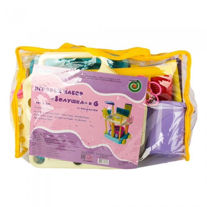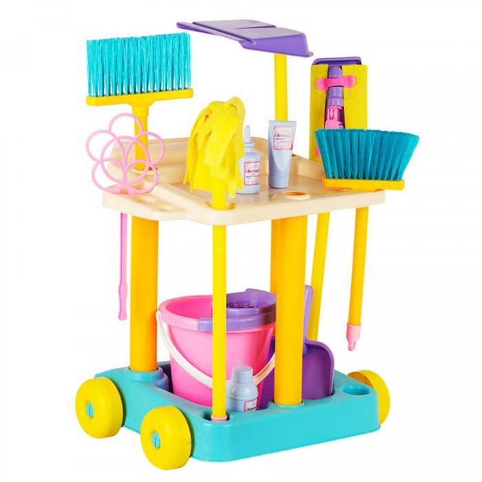 Размер упаковки: 43,5*38,5*61,5 см Функционал: игровой тематический набор, клининг Упаковка: сумка ПВХ Страна обладатель бренда: Россия Материал: пластик Комплектация: тележка, инструменты и аксессуары - 14 предметов Возраст ребенка: от 3 лет • Для игр, имитирующих повседневные домашние дела, есть множество различныхприборов и аксессуаров, которые позволят оборудовать игровой домик и организовать его пространство по образу и подобию взрослого. • Такие игры приучают девочек к ведению домашнего хозяйства, готовят ко взрослой жизни. • Набор для уборки привлекает внимание не только своим ярким внешним видом, но и функциональностью. • С ним малышка почувствует себя настоящей хозяйкой и сможет сделать уборку в кукольном домике.