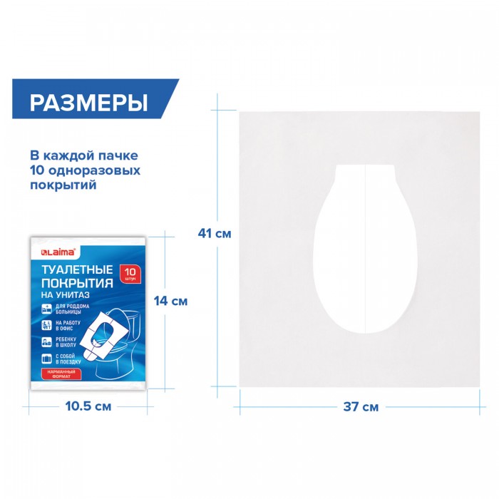 Накладки покрытия сидения для унитаза КОМПЛЕКТ 10 шт. школа/офис/больница/роддом/поездка LAIMA, 114177