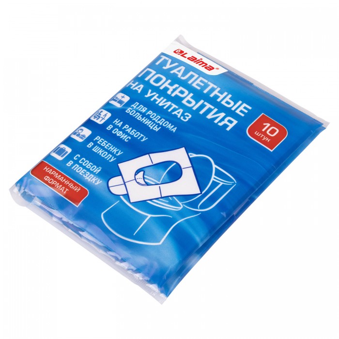 Одноразовые накладки на унитаз LAIMA в удобном карманном формате. В комплекте 10 одноразовых покрытий. Помогут в роддоме, в больнице, в дороге, на отдыхе и на работе. Изготовлены из 100% целлюлозы, гигиеничны, легко смываются в унитаз после использования.