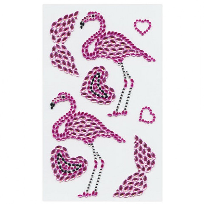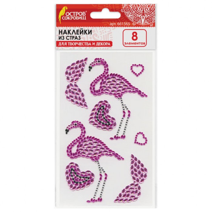 Наклейки готовые из страз ФЛАМИНГО, 8 декоративных элементов, 9,5х15,5 см, ОСТРОВ СОКРОВИЩ, 661565
