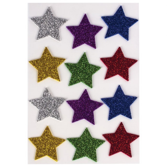 Наклейки из EVA "Звезды", 12 шт., блестящие, ассорти, ОСТРОВ СОКРОВИЩ, 661452