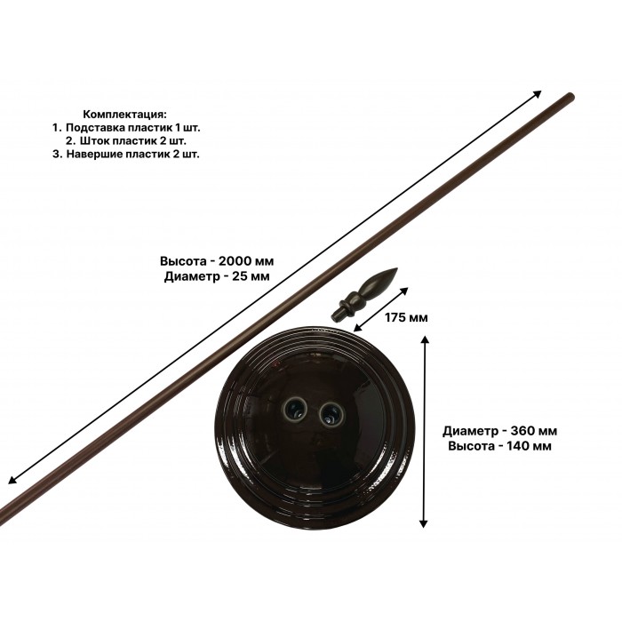 Напольный флагшток пластик коричневый, 2 штока