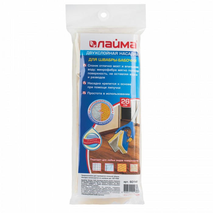 Двухслойная насадка из спонжа и микрофибры LAIMA предназначена для проведения влажной уборки помещения.