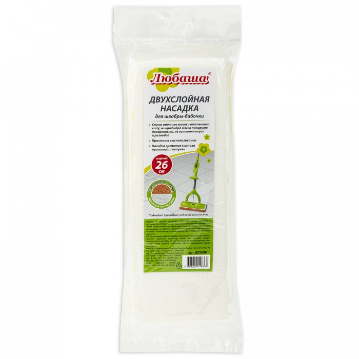 Двухслойная насадка из спонжа и микрофибры ЛЮБАША станет незаменимой при проведении влажной уборки.
