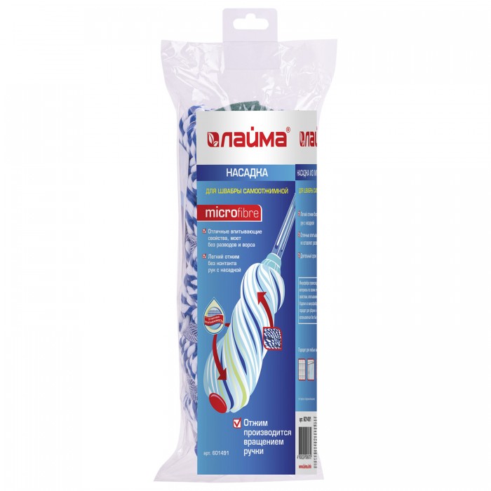 Насадка МОП для швабры самоотжимной скручивающейся 601471, микрофибра, 32 см, двуцветная, LAIMA, 601491
