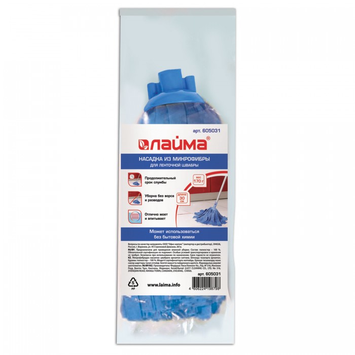 Насадка ленточная из микрофибры LAIMA предназначена для проведения влажной и сухой уборки помещения.