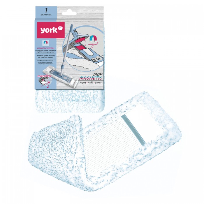 Насадка МОП плоская 42х12 см из микрофибры, плотный ворс, для швабры "Magnetic", YORK, 81700