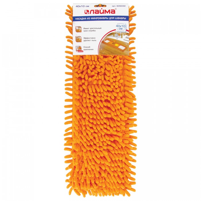 Насадка МОП плоская для швабры/держателя 40 см, карманы (ТИП К), ворсистая микрофибра, ворс 2 см, LAIMA, 605032