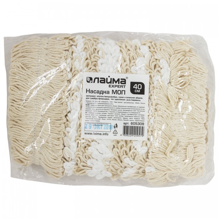 Насадка МОП плоская для швабры/держателя 40 см, уши/карманы (ТИП У/К), хлопок/микрофибра, LAIMA EXPERT, 605309